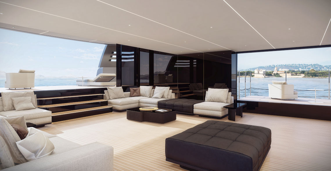 Designed by Paolo Giordano (PG Yacht Design), L50 is noteworthy for her sporty and muscular character. L50 is hiding an incredibly large and spaciaous interior making her enjoyable all year around. There are many features making L50 a unique superyacht. The most impressive are the upper deck, entirely dedicated to the owner, and the lower deck's "waterline lounge area" which is an enormous space directly overlooking the sea.